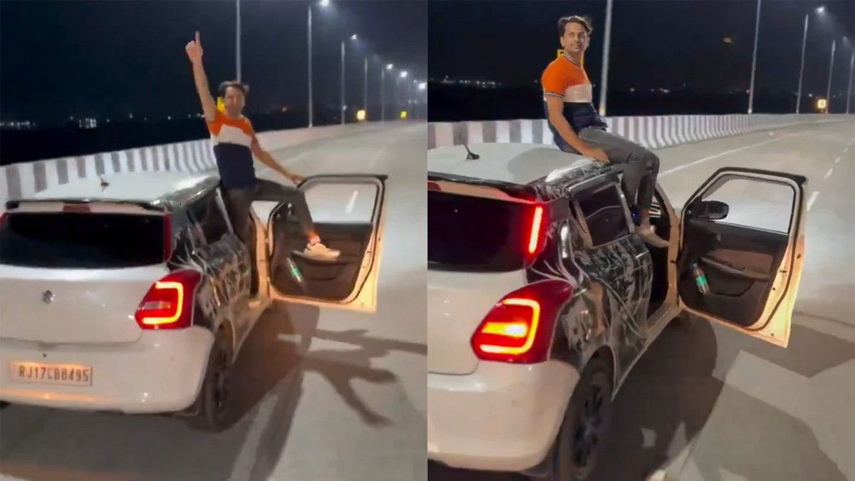 Man Doing Dangerous Stunts On Moving Swift Car In Mumbai | மும்பையில் மாருதி சுஸுகி ஸ்விஃப்ட் காரில் இளைஞர் ஒருவர் ஆபத்தான முறையில் காரின் மேற்கூரையின் மீது நின்றப்படி பயணம் செய்துள்ளார்.