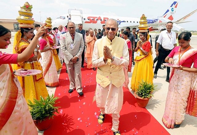 மோரீஷஸ் பிரதமரை வரவேற்கும் வகையில் சுவரொட்டிகள் மற்றும் பதாகைகளும் வழிநெடுக ஒட்டப்பட்டிருந்தன.