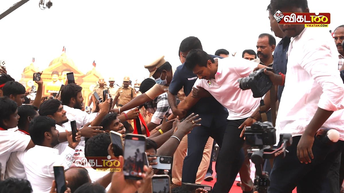 ஆனால் உதயநிதி வந்த பிறகு காவல்துறை மற்றும் நிர்வாகிகளால் கூட்டத்தை கட்டுப்படுத்த முடியவில்லை. பலரும் ரேம்பில் ஏறி அவரை பார்த்து ஆரவாரம் செய்தனர். சிலர் உதயநிதி கையைப்பிடித்து இழுத்து காயப்படுத்தினர். இதில் உதயநிதி ஒரு நொடி அதிர்ச்சியாகி தன் கையை பார்த்தபடி சென்றார்.