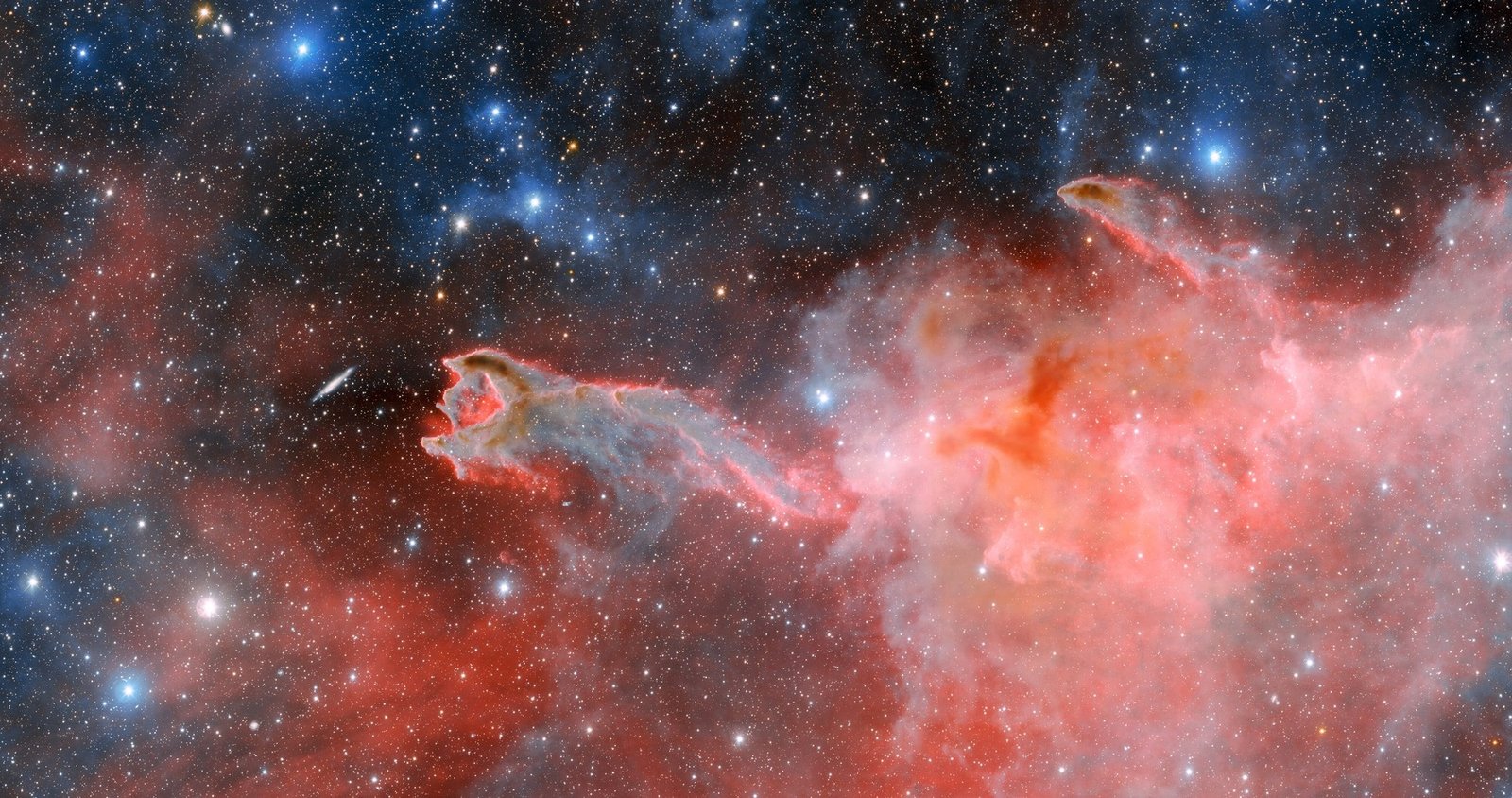 இந்தக் கடவுளின் கைகள் 10 கோடி ஒளியாண்டுகள் தொலைவில் இருக்கும் இ.எஸ்.ஓ 257-19 (பிஜிசி 21338) என்ற பெயருள்ள சுழலும் பால்வெளி மண்டலத்தை நோக்கிச் செல்வது போன்ற தோற்றத்தைத் தருகிறது.