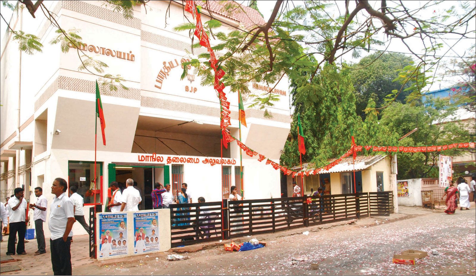 மீண்டும் அதற்கான பொறுப்பு சக்கரவர்த்தியிடமே ஒப்படைக்கப்பட்டது. அவர் அமைந்தகரையில் உள்ள அய்யாவு மஹாலில் அமைக்கலாம் என முடிவு செய்தார். இதற்கும் கரு.நாகராஜன் எதிர்ப்பு தெரிவித்தார். இதையடுத்து பிரச்னை கேசவ விநாயகத்திடம் சென்று இருக்கிறது. இதையடுத்து ‘அமைந்தகரையிலேயே அமைத்துக் கொள்ளலாம்’ என முடிவு செய்யப்பட்டது. அதன்படி அமைந்தகரையில் தலைவர் அறை, முக்கிய நிர்வாகிகள் அறை, கூட்ட அரங்கம், பாராளுமன்ற தொகுதிகளுக்கான தனித் தனி கட்டுப்பாட்டு அறை போன்ற பல்வேறு வசதிகளுடன் தேர்தல் அலுவலகம் அமைக்கப்பட்டது.