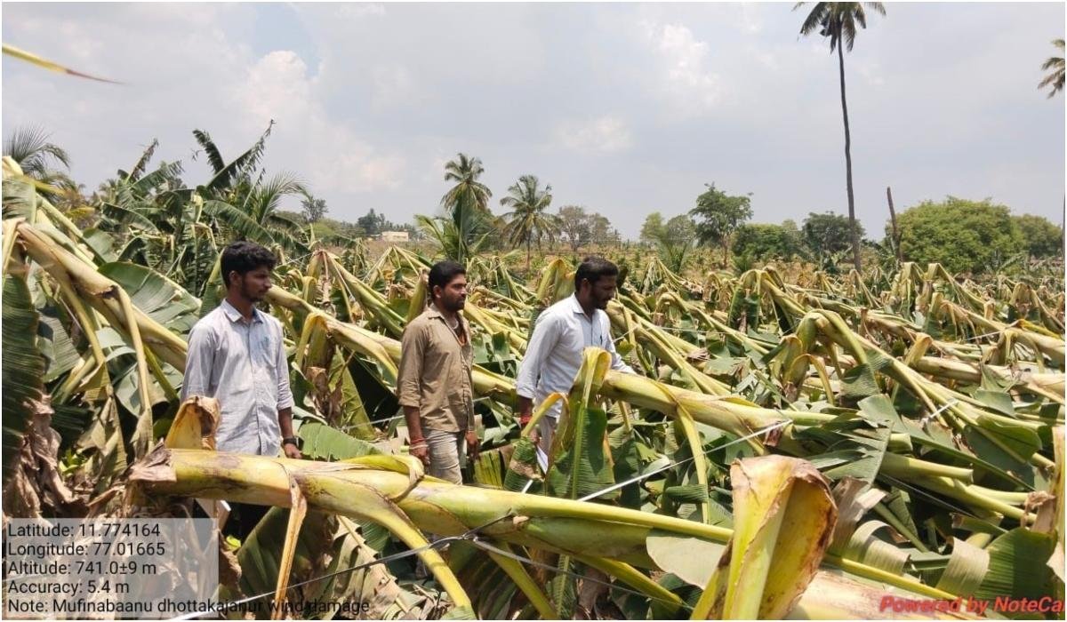 ஈரோடு மாவட்டத்தில் கடந்த ஒரு வாரமாக பலத்த காற்றுடன் மழை பெய்து வருகிறது. இதனால், தாளவாடி, பவானிசாகர், சத்தியமங்கலம், அந்தியூர், அத்தாணி, கோபி உள்ளிட்ட பகுதிகளில் பயிரிடப்பட்டு, அறுவடைக்கு தயாராக இருந்த வாழைமரங்கள் சாய்ந்து சேதமடைந்துள்ளன.