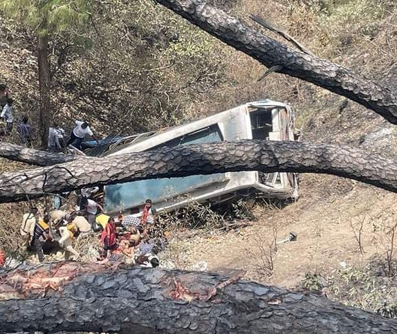 ஜம்மு – பூஞ்ச் நெடுஞ்சாலையில் காளி தார் மந்திர் அருகே ஓட்டுநரின் கவனக்குறைவால் 150 அடி ஆழமுள்ள பள்ளத்தில் பேருந்து விழுந்துள்ளது.
