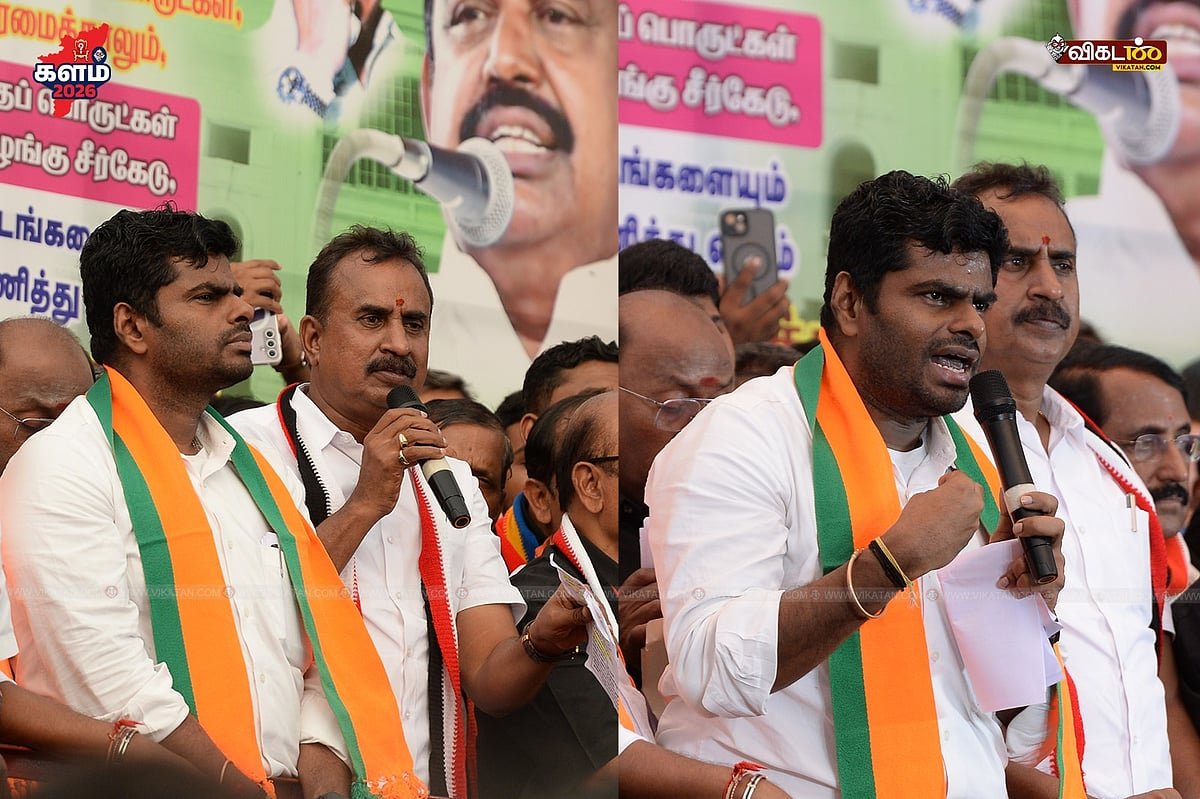 கடைசியாக பேசிய அண்ணாமலை, “ஸ்டாலின் ரீல்ஸ் முதலமைச்சராக மட்டுமே இருக்கிறார். வேறு எதிலும் அக்கறை காட்டுவதில்லை. கடந்த 5 ஆண்டுகளில் 1,495 கோடி மதுபாட்டில்கள் விற்கப்பட்டுள்ளன. பாட்டிலுக்கு 10 ரூபாய் வீதம் ரூ.14,950 கோடி பணத்தை செந்தில் பாலாஜி வசூல் செய்துள்ளார். தீய சக்தியை தூக்கி எறிய வேண்டும். இல்லையென்றால் தமிழகம் நம்மை மன்னிக்காது. அனைவரும் எடப்பாடி பழனிசாமி பின்னால் அணி வகுத்து செல்ல வேண்டிய கட்டாயம் இருக்கிறது” என்றார்.