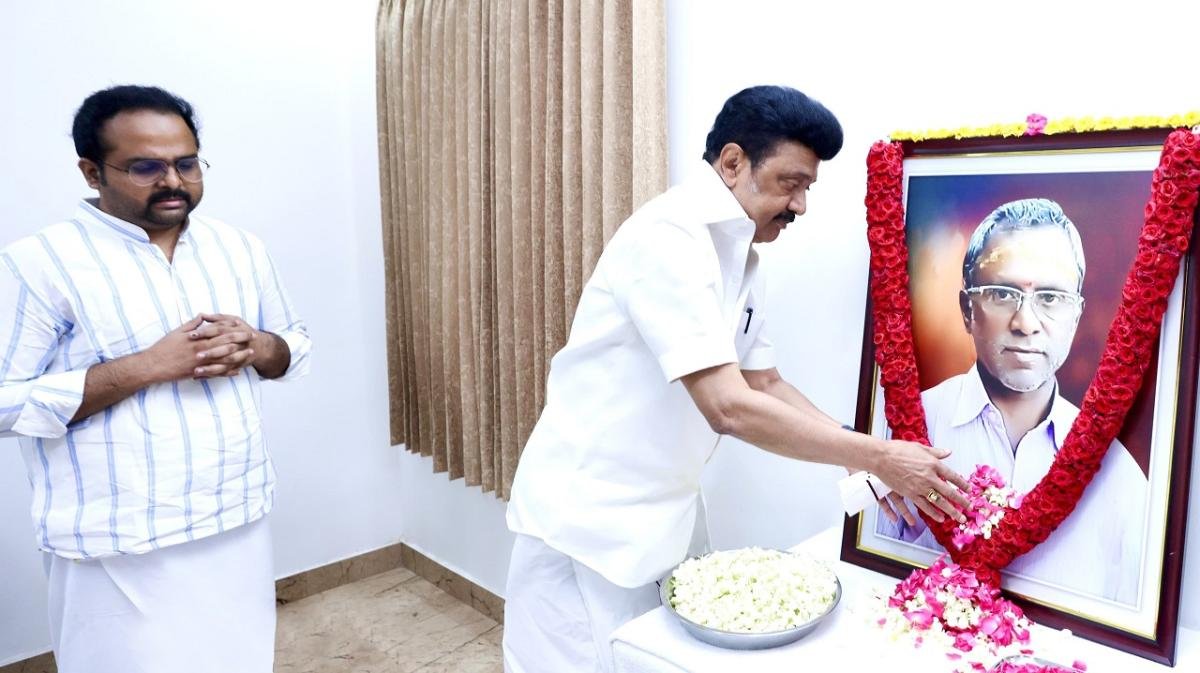 நாமக்கல்: தமிழக முதல்வர் தனிச் செயலாளர் தந்தை உடல் நல குறைவால் உயிரிழந்தார். இதையடுத்து வெண்ணந்தூரில் உள்ள அவரது இல்லத்துக்கு நேரில் சென்ற தமிழக முதல்வர் ஸ்டாலின், தனிச் செயலாளர் தந்தையின் உருவப் படத்துக்கு மலர் தூவி அஞ்சலி செலுத்தினார்.