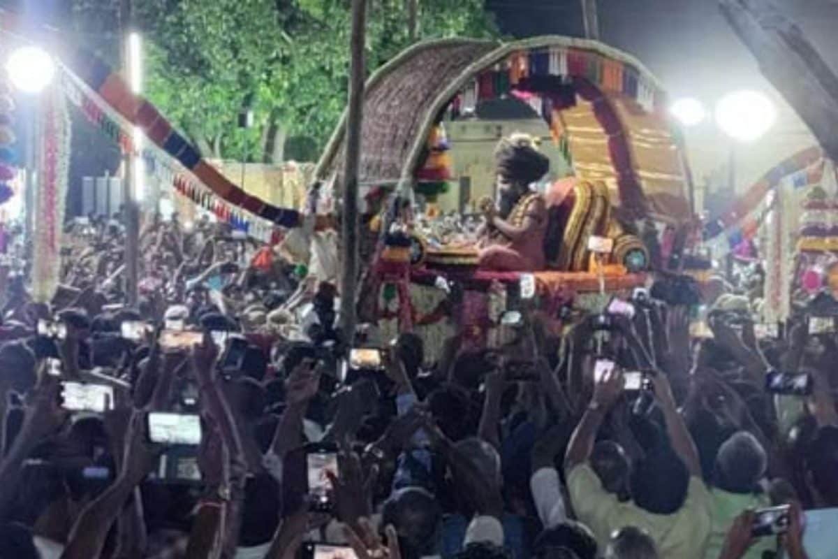 தருமபுரம் ஆதீனத்தின் பட்டணப்பிரவேச நிகழ்ச்சிக்கு தடைவிதிக்கக் கோரி, பல்வேறு அரசியல் கட்சியினர் மற்றும் அமைப்பினர் கண்டன ஆர்ப்பாட்டத்தில் ஈடுபட்டனர்.