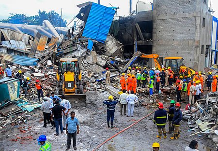 விபத்து குறித்து தவலறிந்ததும் தீயணைப்புப் படையினா் விரைந்து வந்து, மீட்பு மற்றும் நிவாரண பணிகளைத் தொடங்கினா். 10-க்கும் மேற்பட்ட தீயணைப்பு வாகனங்களின் உதவியோடு பல மணி நேர முயற்சிக்குப் பிறகு தீ கட்டுக்குள் கொண்டு வரப்பட்டது. தொடா்ந்து, தேசிய மற்றும் மாநில மீட்புப் படையினரும் மீட்புப் பணியில் இணைந்தனா்.
