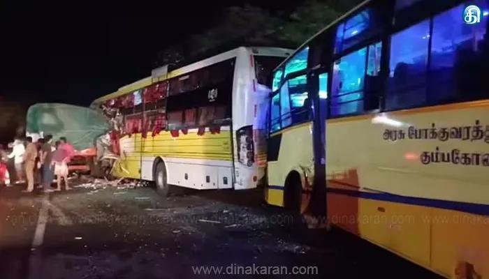 இதில் சொகுசு பேருந்தில் பயணம் செய்த மேல்மருவத்தூரை அடுத்த அகிலி கிராமத்தை சேர்ந்த ராஜேஷ், பிரவீன், சென்னை கொடுங்கையூர் சேர்ந்த தனலட்சுமி மற்றும் ஒரு பெண் உட்பட மொத்தம் நான்கு பேர் சம்பவ இடத்திலேயே உடல் நசுங்கி உயிரிழந்தனர். 20க்கும் மேற்பட்டோர் படுகாயம் அடைந்தனர். தகவல் அறிந்து வந்த போலீசார் படுகாயம் அடைந்தவர்களை மீட்டு ஆம்புலன்ஸ் மூலமாக மருத்துவமனைக்கு அனுப்பி வைத்தனர். மேலும் உயிரிழந்தவர்களின் உடல்கள் மீட்கப்பட்டு பிரேத பரிசோதனைக்கு கொண்டு செல்லப்பட்டன. இந்த விபத்து காரணமாக அப்பகுதியில் நீண்ட நேரம் போக்குவரத்து பாதிக்கப்பட்டது.