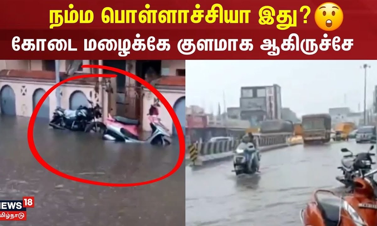 கோடை காலத்தில் மழை பெய்து வரும் நிலையில் பொள்ளாச்சி மழை வெளுத்து வாங்கி தெப்பகுளமாக சில இடங்களில் காட்சி அளிக்கிறது | Pollachi | TN Rain | Rain Alert
