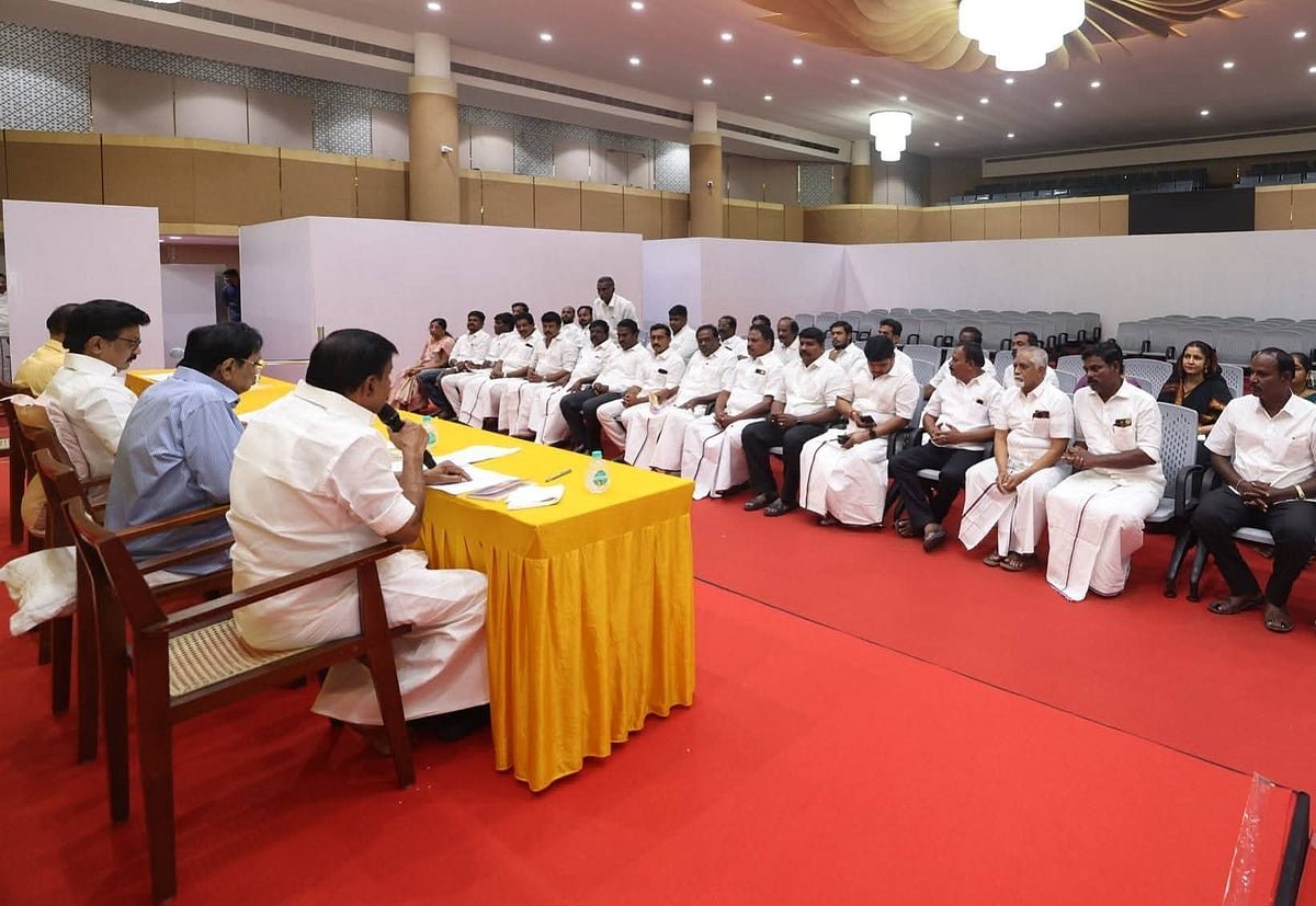 மாவட்டச் செயலாளர் கெளதமன், `நீங்கள் நிறைவேற்றிய திட்டங்களால் மக்கள் மகிழ்ச்சியுடன் உள்ளனர். நமக்கு வெற்றி வாய்ப்பு பிரகாசமாக இருப்பதாக’ சொல்லியிருக்கிறார். இதைதொடர்ந்து பெரும்பாலான நிர்வாகிகள், `நாகை தொகுதியை கூட்டணி கட்சிக்கு ஒதுக்க கூடாது. நாமே நேரடியாக போட்டியிட வேண்டும்’ என ஸ்டாலினிடம் கோரிக்கை வைத்துள்ளனர்.