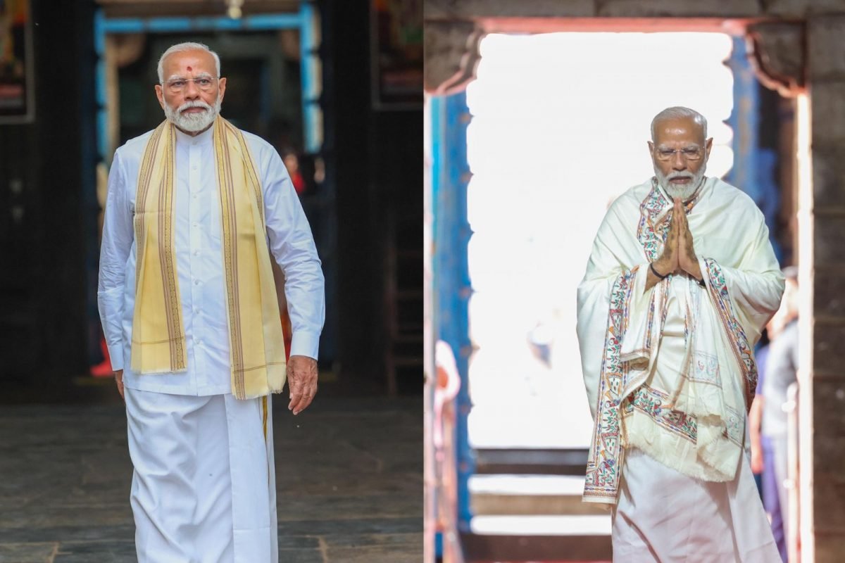 3 நாள் பயணமாக பிரதமர் நரேந்திர மோடி கன்னியாகுமரி வந்தடைந்தார். விவேகானந்தர் மண்டபத்தில் அவர் பட்டு வேஷ்டியில் வந்தார்.