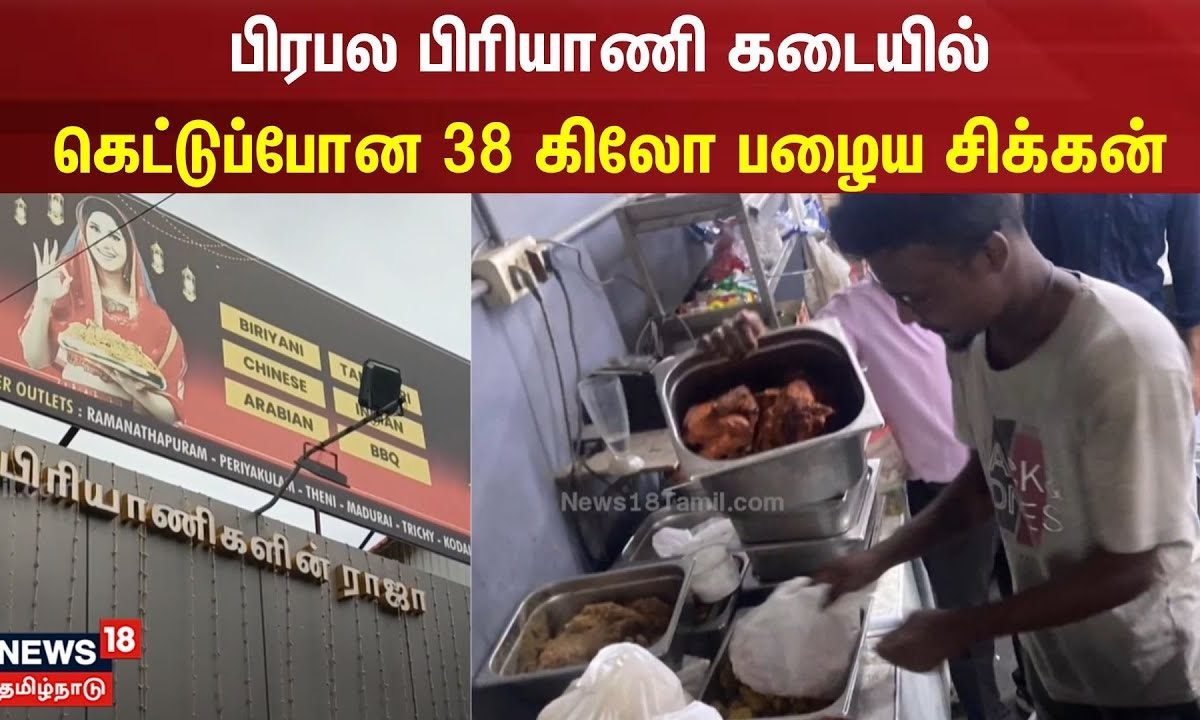 தூத்துக்குடி மாநகரின் பிரபல பிரியாணி கடையான அனிபா பிரியாணி கடையில் கெட்டுப்போன 38 கிலோ பழைய சிக்கன், சாதம் ,எண்ணெய் கத்திரிக்காய், புரோட்டா சப்பாத்தி மாவு மற்றும் பிரட் ஹல்வா ஆகியவற்றை பறிமுதல் செய்த உணவு பாதுகாப்பு துறையினர் உணவு பாதுகாப்பு உரிமத்தை தற்காலிகமாக ரத்து செய்தனர்செய்திகளை துல்லியமாகவும் துரிதமாகவும் வழங்கும் தமிழகத்தின் முதன்மை செய்தி தொலைக்காட்சி உங்கள் நியூஸ்18 தமிழ்நாடு.