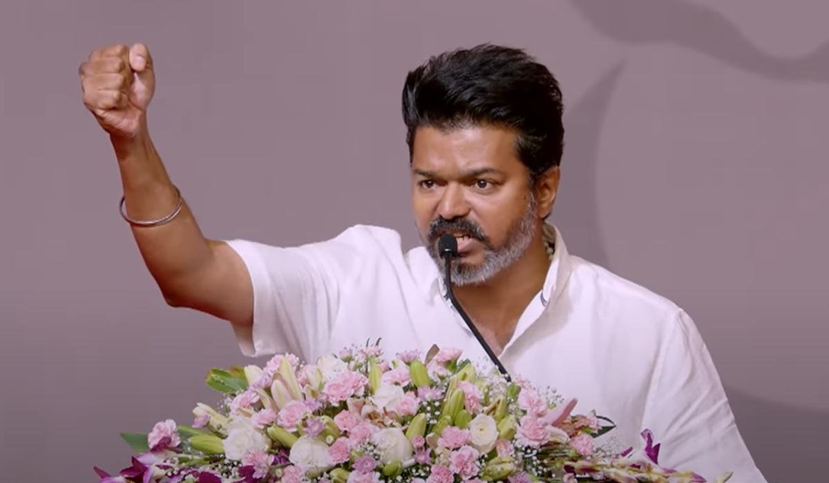 கூட்டத்தில் நன்றியுரை ஆற்றிய விஜய் திமுக ஆட்சியை, தமிழக முதல்வரை, மத்தியில் ஆளும் பாஜகவை, பிரதமர் மோடி விமர்சித்துப் பேசினார்.