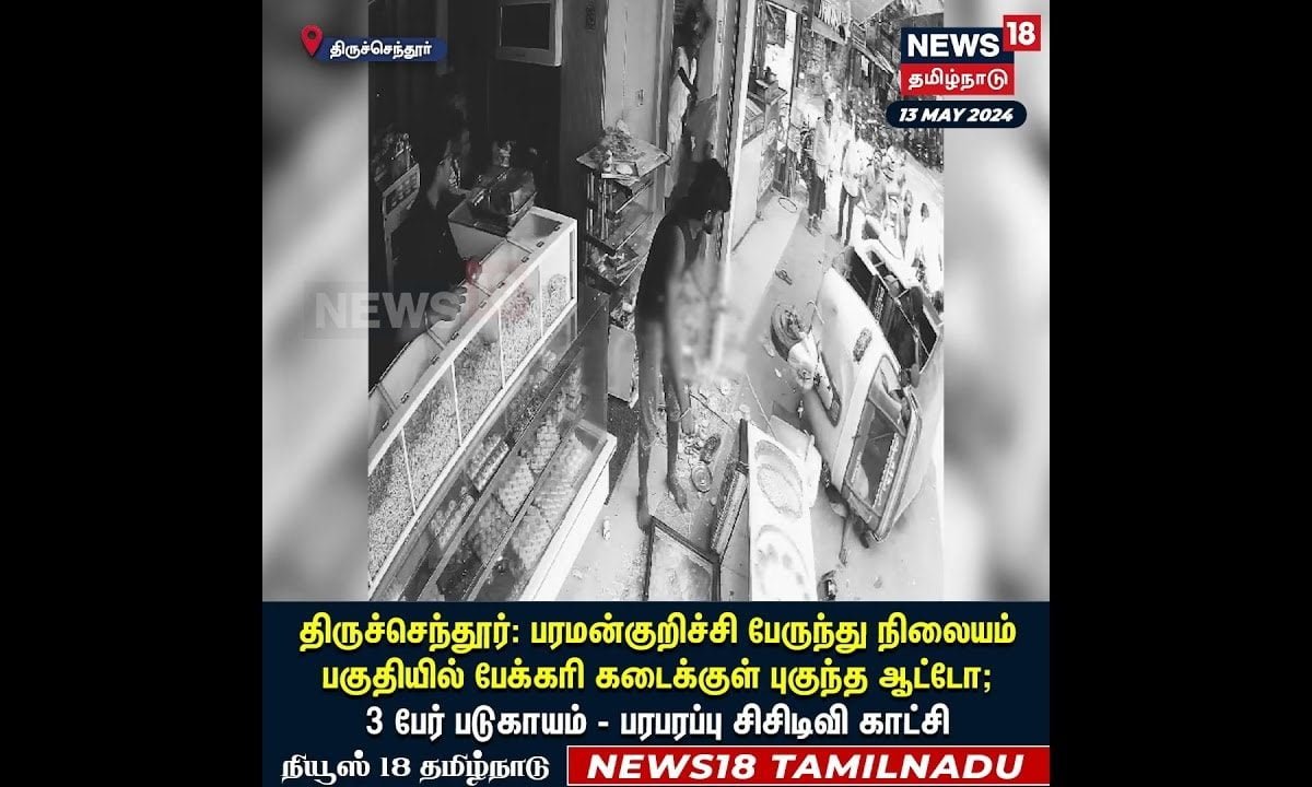பேக்கரிக்குள் புகுந்த ஆட்டோ ; பதறவைக்கும் CCTV காட்சி | Thiruchendur | Auto Accident செய்திகளை துல்லியமாகவும் துரிதமாகவும் வழங்கும் தமிழகத்தின் முதன்மை செய்தி தொலைக்காட்சி உங்கள் நியூஸ்18 தமிழ்நாடு.
