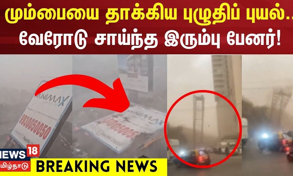 மும்பையில் புழுதிப்புயல், சூறைக்காற்றுடன் கனமழை-சாலைகளில் வெள்ளம். ராட்சத இரும்பு பேனர் பெட்ரோல் பங்க் மீது விழுந்தது- 7 பேர் சிக்கி தவிப்பு