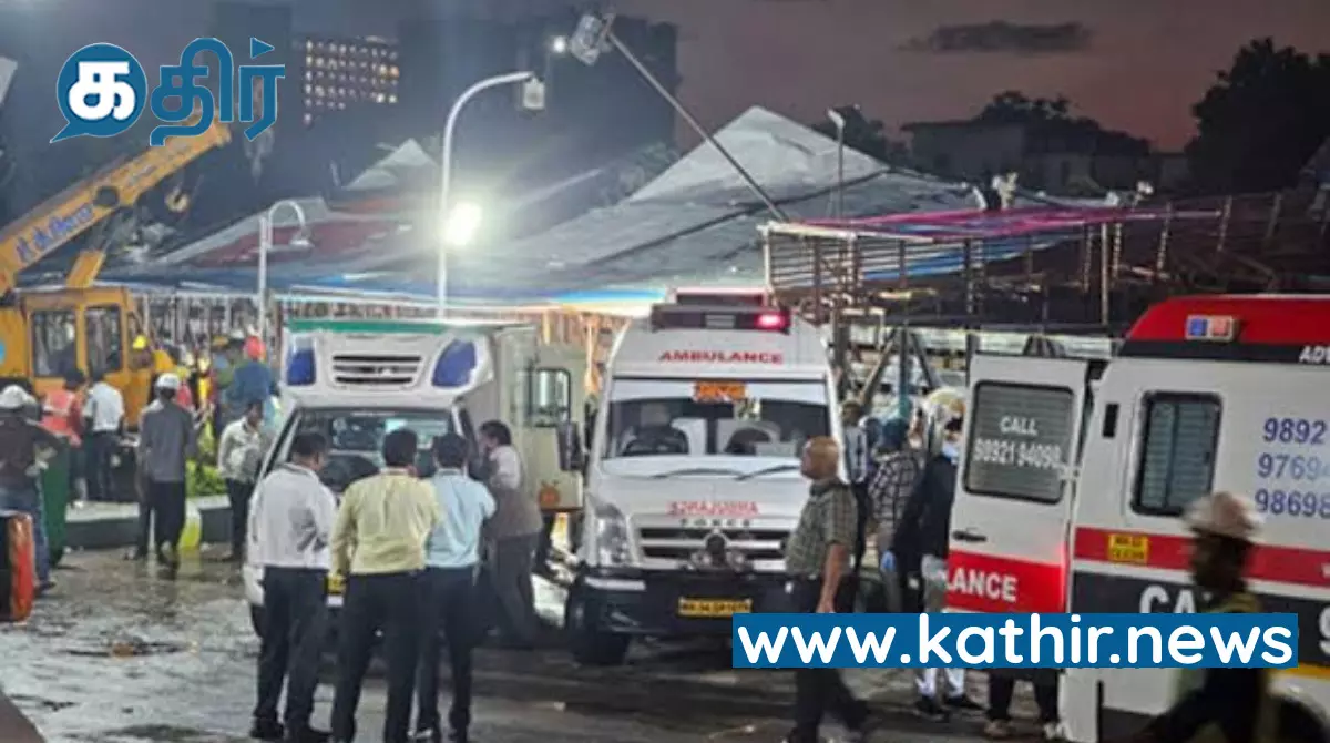 மும்பையை நேற்று கடுமையான மழையுடன் கூடிய புழுதிப் புயல் தாக்கியது. இதில் 100 அடி உயர விளம்பரப் பலகை சரிந்து விழுந்தது. Kathir NewsShare this: Share on Facebook (Opens in new window) Facebook Share on X (Opens in new window) X Share on WhatsApp (Opens in new window) WhatsApp Share on X (Opens in new window) X More Share on Telegram (Opens in new window) Telegram Post navigation டூவீலர் மாதிரி மைலேஜ் தரும் மாருதி காரின் டெலிவரி தொடங்கியது! விலை இவ்ளோதானா! ஷோரூம்களில் திருவிழா கூட்டம்! திருச்சியில் தாயுடன் நடந்துச் சென்ற 7 வயது சிறுவனை கடித்த நாய்… கால்நடை மருத்துவர் மீது வழக்கு May 14, 2024