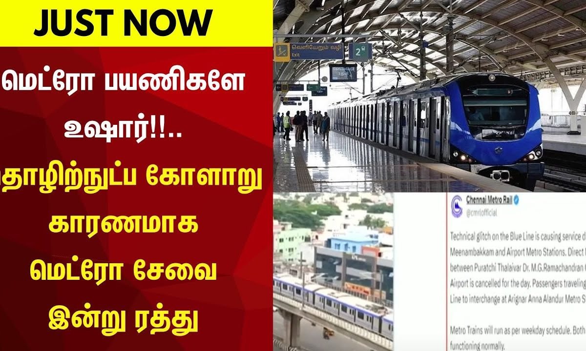 மெட்ரோ பயணிகளே உஷார்!!.. தொழிற்நுட்ப கோளாறு காரணமாக மெட்ரோ சேவை இன்று ரத்து | Chennai | N18VShare this: Share on Facebook (Opens in new window) Facebook Share on X (Opens in new window) X Share on WhatsApp (Opens in new window) WhatsApp Share on X (Opens in new window) X More Share on Telegram (Opens in new window) Telegram Post navigation Breaking News | பகலில் கட்டுமானப் பணிக்கு தடை..? தமிழ்நாடு அரசு போட்ட உத்தரவு | Building தமிழகத்தில் இந்த 8 மாவட்டங்களில் இன்று வெளுத்து வாங்கப்போகும் கனமழை