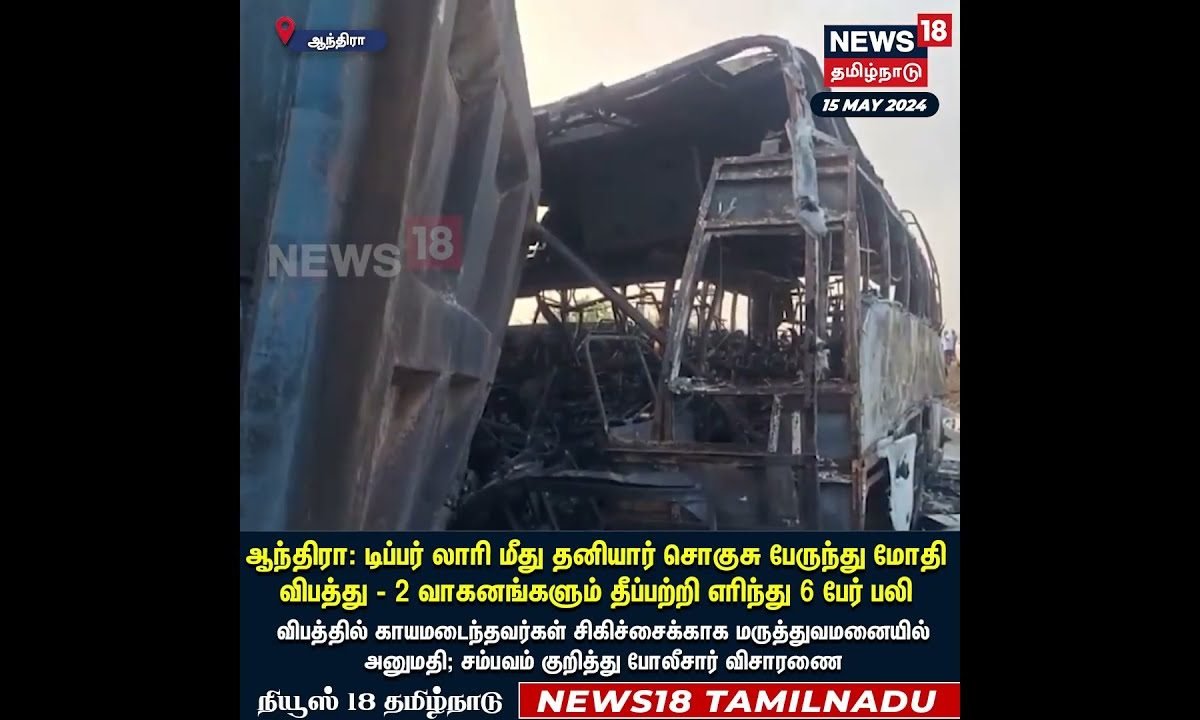 லாரி மீது மோதிய சொகுசு பேருந்து – பதறவைக்கும் தீப்பற்றி எரியும் காட்சி | Accident News | N18Sசெய்திகளை துல்லியமாகவும் துரிதமாகவும் வழங்கும் தமிழகத்தின் முதன்மை செய்தி தொலைக்காட்சி உங்கள் நியூஸ்18 தமிழ்நாடு.
