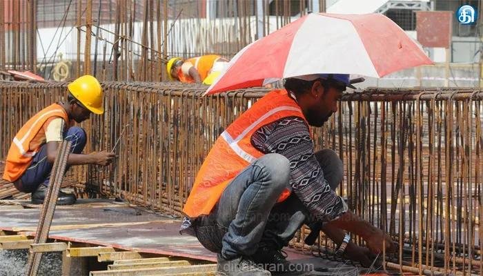 இந்த நிலையில், தமிழகத்தில் கடந்த 4ம் தேதி முதல் கத்தரி வெயில் தொடங்கி 28ம் தேதி வரை 25 நாட்களுக்கு இந்தக் கத்தரி வெயில் நீடிக்க உள்ளது. இத்தகைய சூழலில் கட்டட பணியில் ஈடுபட்டுள்ள தொழிலாளர்கள் அதிக வெப்ப அலை காரணமாக ஏற்படும் ஹீட் ஸ்ட்ரோக்கால் பாதிக்கப்பட்டு மருத்துவமனையில் அனுமதிக்கப்பட்டு சிகிச்சை பெறும் நிகழ்வுகளும் ஏற்பட்டுள்ளன. இந்நிலையில், அதிக வெப்பம் காரணமாக காலை 10 முதல் மாலை 4 வரை அனைத்து வகை திறந்தவெளி கட்டுமானப் பணிகள் மேற்கொள்ள தடை விதிக்கப்பட்டுள்ளது.