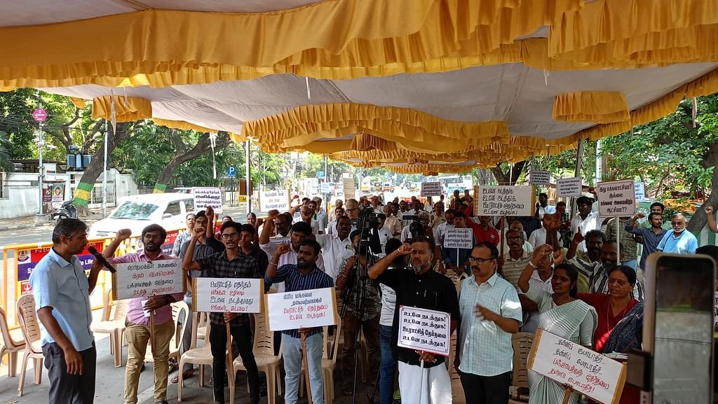 `சிதையும் மக்களாட்சி; உள்ளாட்சியில் அடிபட்டுக் கிடக்கும் 70% நீதி’ – திமுக அரசுக்கெதிராக போராட்டம்!