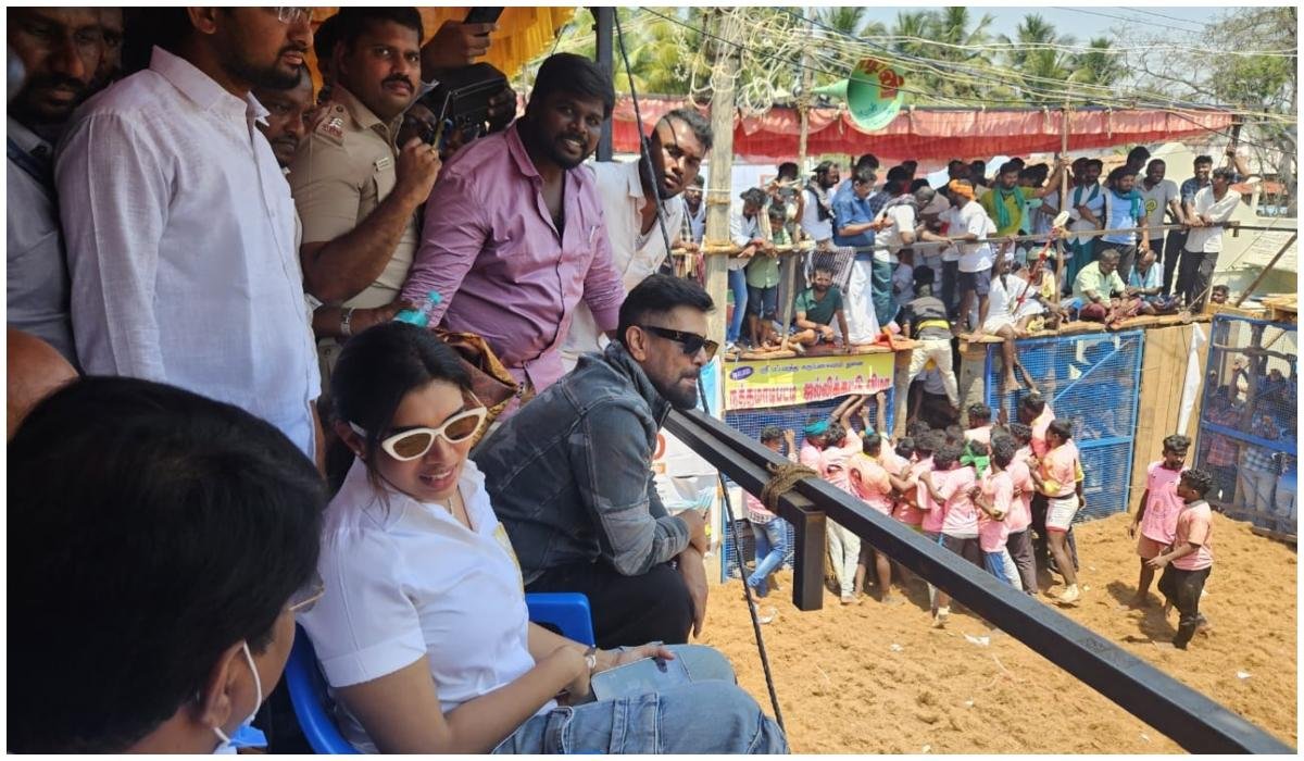 திண்டுக்கல்லில் ஜல்லிக்கட்டை கண்டு ரசித்த விக்ரம், துஷாரா விஜயன்