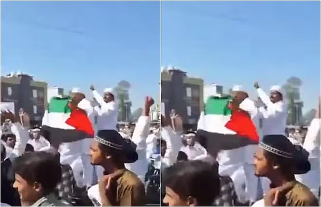 ரமலான் தொழுகைக்குப் பிறகு பாலஸ்தீன கொடியை ஏந்தி முழக்கம்! வைரலாகும் விடியோ!