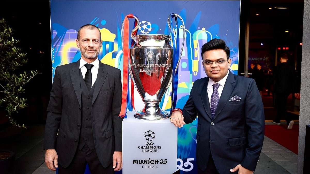 ஐரோப்பிய கால்பந்து கழகத் தலைவரைச் சந்தித்த ஜெய் ஷா..! கிரிக்கெட் – கால்பந்து ரசிகர்கள் மகிழ்ச்சி!