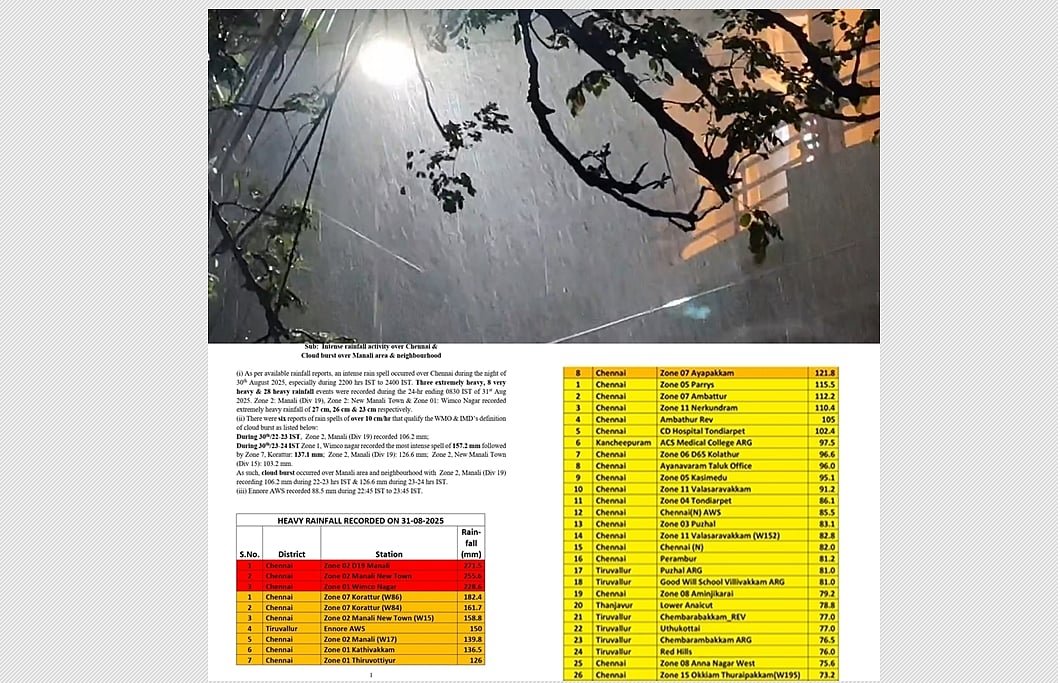 சென்னையில் மேகவெடிப்பு: மணலியில் அதிகபட்சமாக 271.5 மி.மீ. மழைப் பதிவு