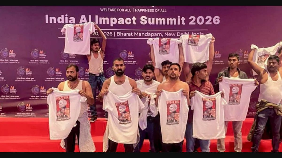 இந்தியாவின் தொழில்நுட்ப வளர்ச்சியைப் பறைசாற்றும் வகையில் டெல்லியில் ‘இந்திய AI உச்சிமாநாடு 2026’ (India AI Impact Summit) நடைபெற்றுவருகிறது. இந்த மாநாட்டில் 100க்கும் மேற்பட்ட நாடுகளில் இருந்து பிரதிநிதிகள், டெலிகேஷன்கள், பங்கேற்பாளர்கள் கலந்துகொண்டதாக தெரிவிக்கப்பட்டிருக்கிறது. இந்த நிலையில், இந்தியா-அமெரிக்கா இடையிலான வர்த்தக ஒப்பந்தத்திற்கு எதிர்ப்பு தெரிவித்து, இளைஞர் காங்கிரஸ் நிர்வாகிகள் சட்டையைக் கழற்றி பிரதமர் மோடிக்கு எதிராகப் போராட்டத்தில் ஈடுபட்டதால் பெரும் பரபரப்பு ஏற்பட்டது.