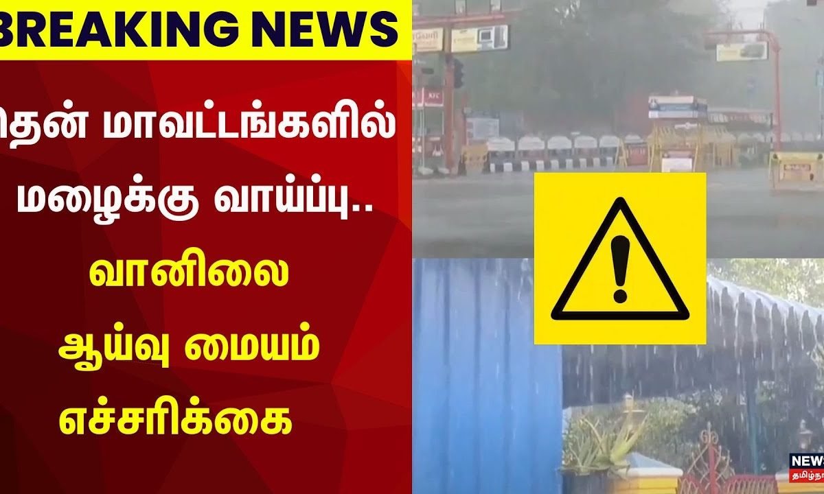 BREAKING | தென் மாவட்டங்களில் மழைக்கு வாய்ப்பு – வானிலை மையம் எச்சரிக்கை | Rain | Weather | N18VShare this: Share on Facebook (Opens in new window) Facebook Share on X (Opens in new window) X Share on WhatsApp (Opens in new window) WhatsApp Share on X (Opens in new window) X More Share on Telegram (Opens in new window) Telegram Post navigation Breaking News | மிதமான மழைக்கு வாய்ப்பு – அந்த 11 மாவட்டங்கள் என்னென்ன..? | TN Rain | N18V BREAKING | Heat Stroke எதிரொலி – கட்டுமானப் பணிகளுக்கு கட்டுப்பாடு – வெளியான அதிரடி உத்தரவு | N18V