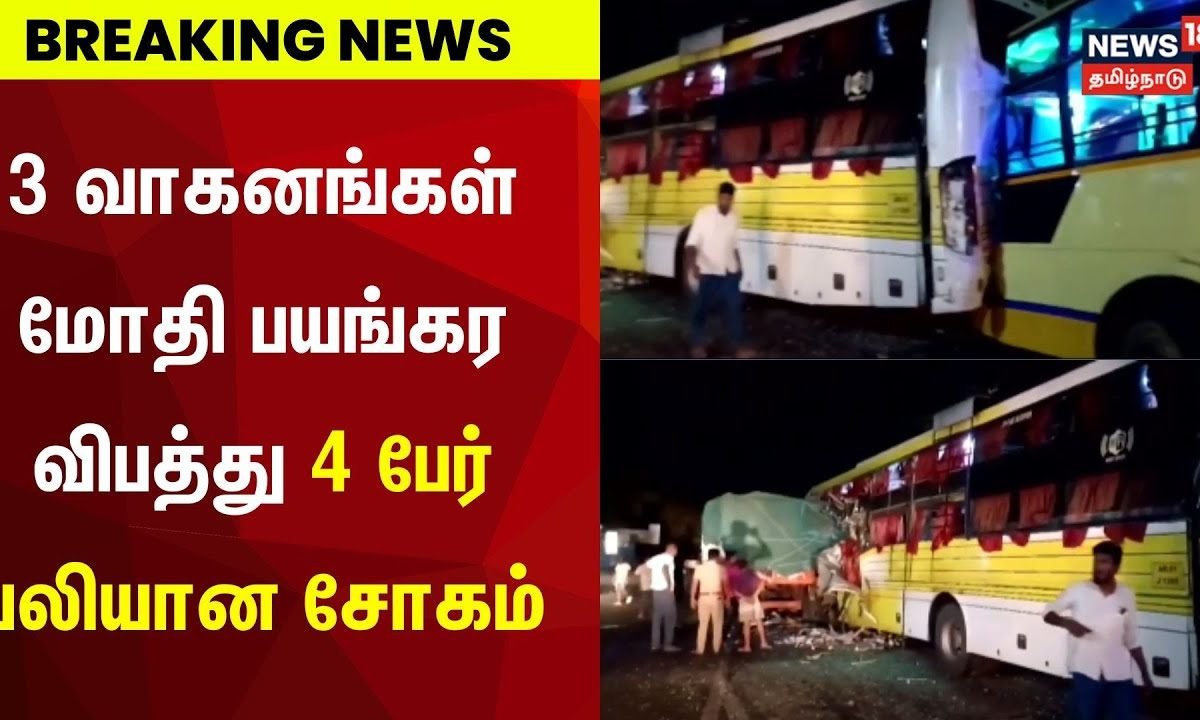Breaking News | செங்கல்பட்டு – சாலை விபத்தில் 4 பேர் உயிரிழப்பு | Chengalpattu Road AccidentShare this: Share on Facebook (Opens in new window) Facebook Share on X (Opens in new window) X Share on WhatsApp (Opens in new window) WhatsApp Share on X (Opens in new window) X More Share on Telegram (Opens in new window) Telegram Post navigation கனமழையால் ரயில் பாலத்தில் சிக்கிய அரசு பேருந்து – எச்சரித்தும் போனதால் விபரீதம் | Tirunelveli | N18V தொடர் மழையால் அரசு பேருந்தில் ஒழுகிய மழை நீர் – பயணிகள் அவதி | Madurai | Heavy Rain | N18V