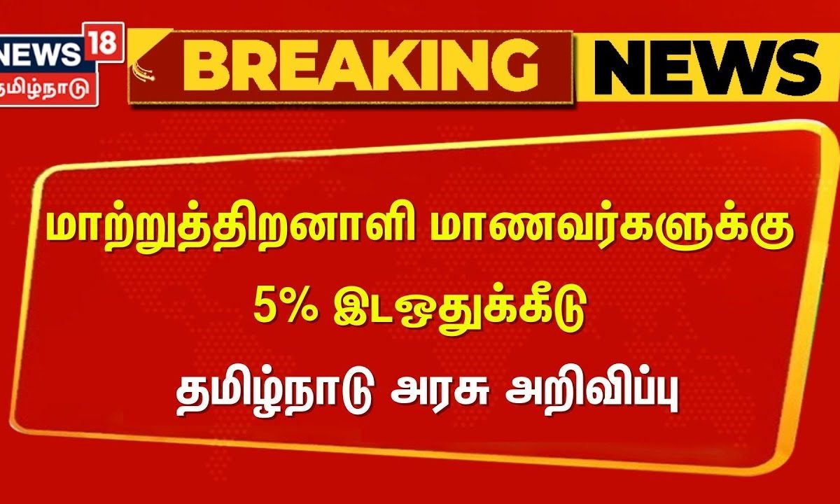 BREAKING NEWS || மாற்றுத்திறனாளி மாணவர்களுக்கு 5% இடஒதுக்கீடு – தமிழ்நாடு அரசு அறிவிப்பு | Handicapped Students | Tamilnadu Govt | News18 Tamil Nadu