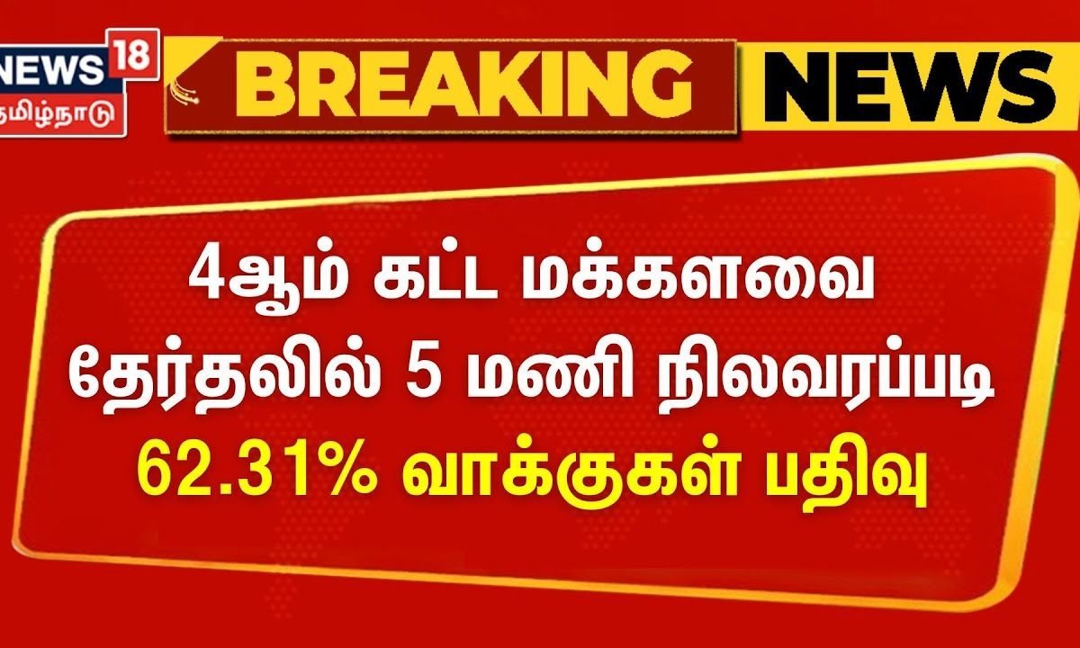 4ஆம் கட்ட மக்களவை தேர்தலில் 5மணி நிலவரப்படி 62.31% வாக்குகள் பதிவு- தேர்தல் ஆணையம்Share this: Share on Facebook (Opens in new window) Facebook Share on X (Opens in new window) X Share on WhatsApp (Opens in new window) WhatsApp Share on X (Opens in new window) X More Share on Telegram (Opens in new window) Telegram Post navigation Breaking News | உடுமலையில் மேலும் ஒரு சிறுமி வன்கொடுமை | Udumalaipettai | Child Abuse Election Breaking | 4ஆம் கட்ட மக்களவை தேர்தலில் 5 மணி நிலவரப்படி 62.31% வாக்குகள் பதிவு | N18V