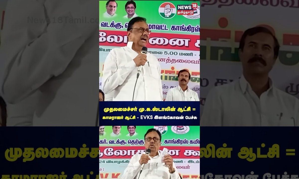 EVKS Elangovan | முதலமைச்சர் மு.க.ஸ்டாலின் ஆட்சி = காமராஜர் ஆட்சி – EVKS இளங்கோவன் பேச்சு | N18S. செய்திகளை துல்லியமாகவும் துரிதமாகவும் வழங்கும் தமிழகத்தின் முதன்மை செய்தி தொலைக்காட்சி உங்கள் நியூஸ்18 தமிழ்நாடு.