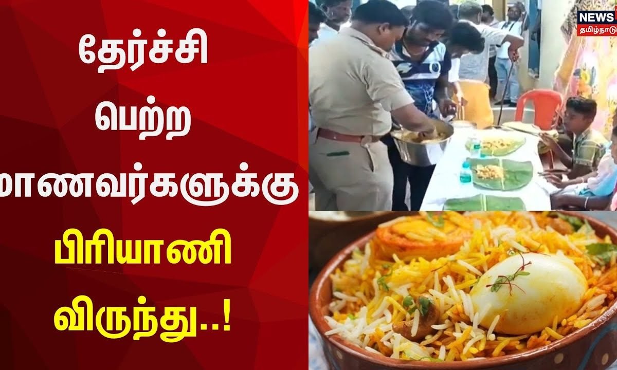 10, +2 தேர்வில் தேர்ச்சி பெற்றவர்களுக்கு பிரியாணி விருந்து அளித்த எஸ்.ஐ. | 10,+2 தேர்வில் பண்ட சோழநல்லூர் கிராம மாணவர்கள் ஏராளமானோர் தேர்ச்சி
