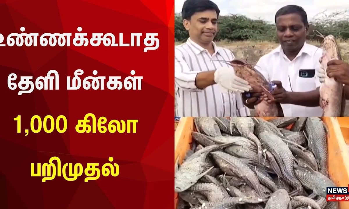 ராமநாதபுரம் அருகே தடை செய்யப்பட்ட தேளி மீன்கள் ஆயிரம் கிலோவை உணவு பாதுகாப்புத்துறை பறிமுதல் செய்து அழித்துள்ளது.Share this: Share on Facebook (Opens in new window) Facebook Share on X (Opens in new window) X Share on WhatsApp (Opens in new window) WhatsApp Share on X (Opens in new window) X More Share on Telegram (Opens in new window) Telegram Post navigation Chennai Metro | சென்னை சென்ட்ரல் – விமான நிலையம் இடையே மெட்ரோ ரயில் சேவை சீரானது | Metro Train Thirupur | வடமாநில தொழிலாளி கொலை – திருப்பூரில் போராட்டம் | North Indian Death | Workers Protest