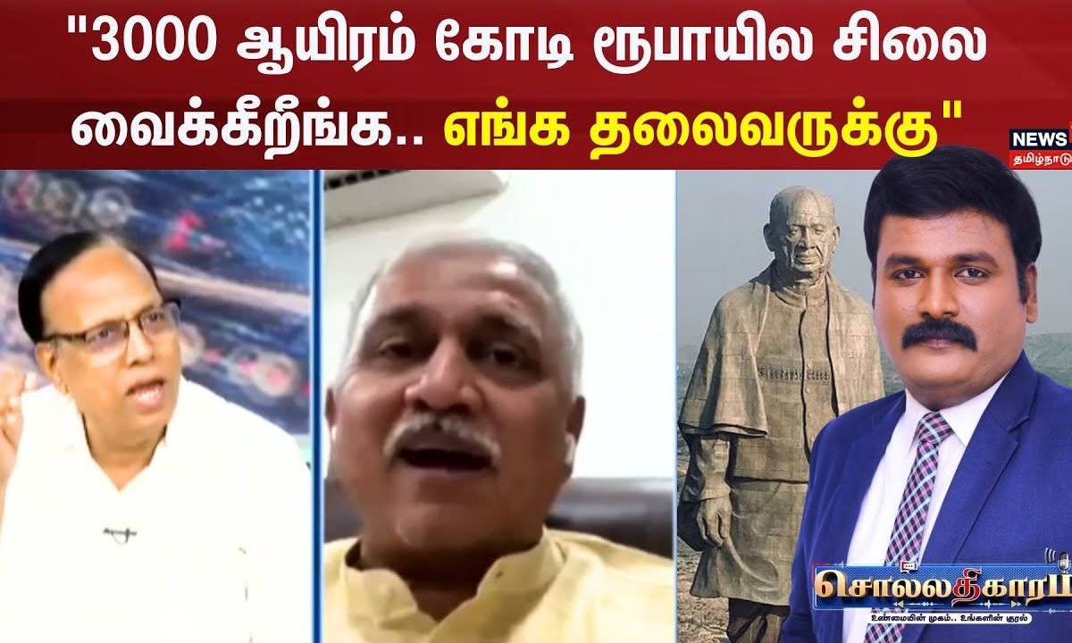 Sollathigaram | “3000 ஆயிரம் கோடி ரூபாயில சிலை வைக்கீறீங்க.. எங்க தலைவருக்கு” – கோபண்ணா CongressShare this: Share on Facebook (Opens in new window) Facebook Share on X (Opens in new window) X Share on WhatsApp (Opens in new window) WhatsApp Share on X (Opens in new window) X More Share on Telegram (Opens in new window) Telegram Post navigation Sollathigaram | TDS ரவி கருத்து கூறிய போது கைதட்டி சிரித்த BJP நாராயணன் | BJP Narayanan Sollathigaram | “அய்யநாதன் ரொம்ப வீராப்பா பேசுனாரு ஆனா நடந்தது வேற…” | BJP Narayanan